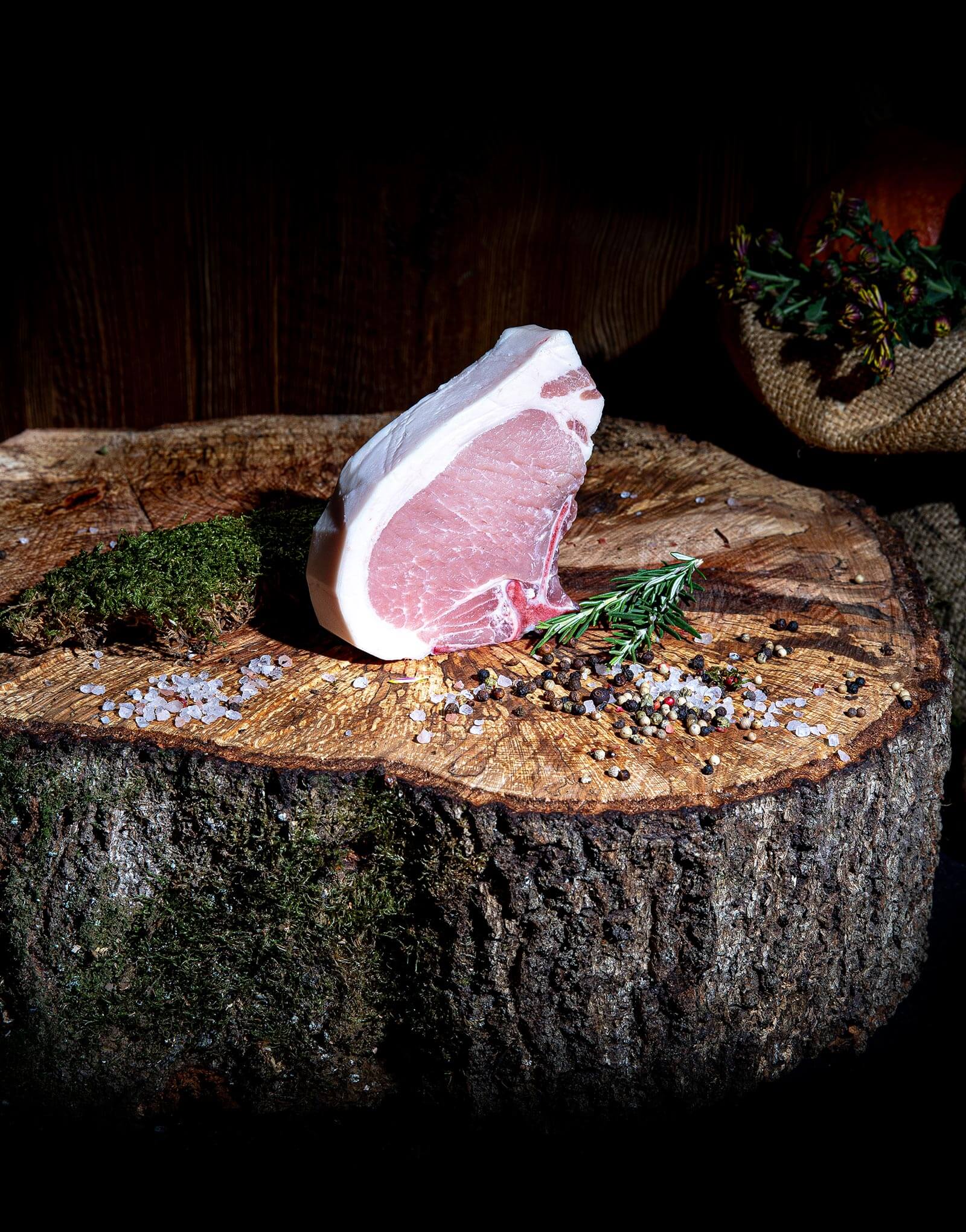 Bei einer Stärke von ca. 2,5cm wird das Kotelett aus dem kurzem Karree, mit einen kleinen Filetanteil geschnitten.